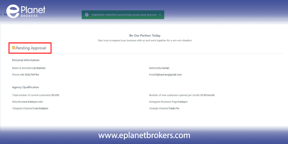 You can apply to become ePlanet brokers’ business partner from your personal panel as well. Log into your personal account at ePlanet Brokers and from Dashboard find the partnership banner.