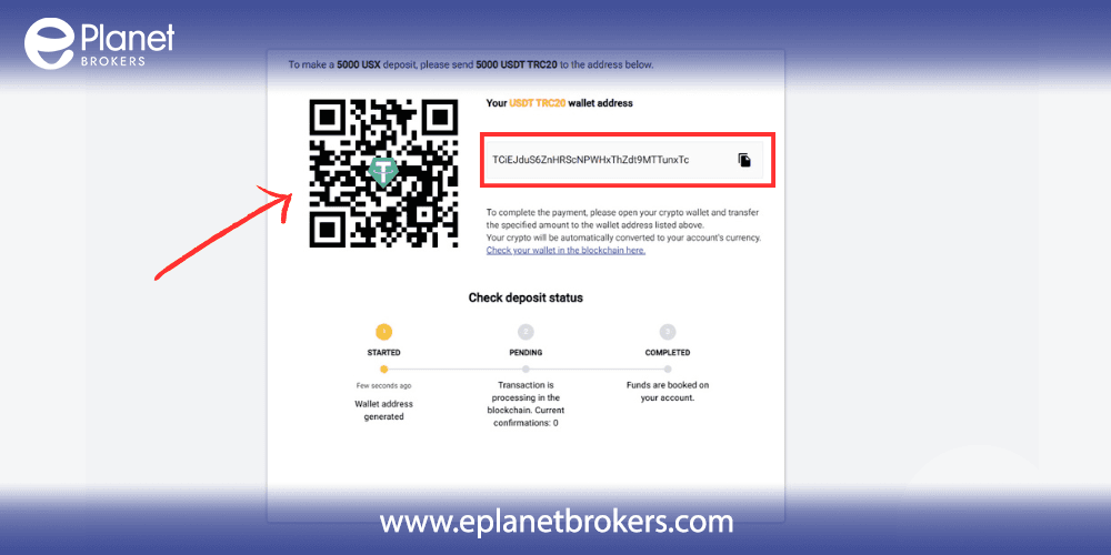 Complete your transaction process by copying your ePlanet Wallet’s address or scanning the QR Code.